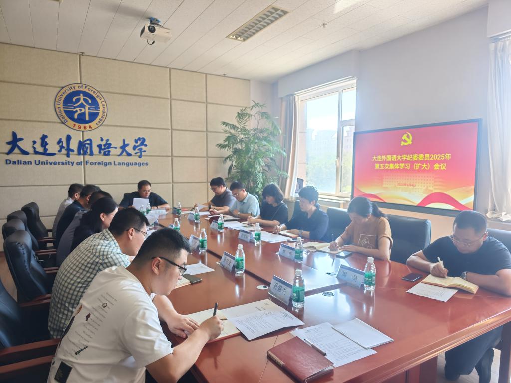 9月4日上午,校纪委组织开展纪委委员(扩大)集体学习会议,校纪委全体委员参加,学校专职纪检监察、巡察干部列席,省纪委监委驻大连外国语大学纪检监察组组长、校纪委书记张晓臣主持会议并讲话。