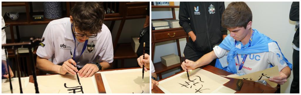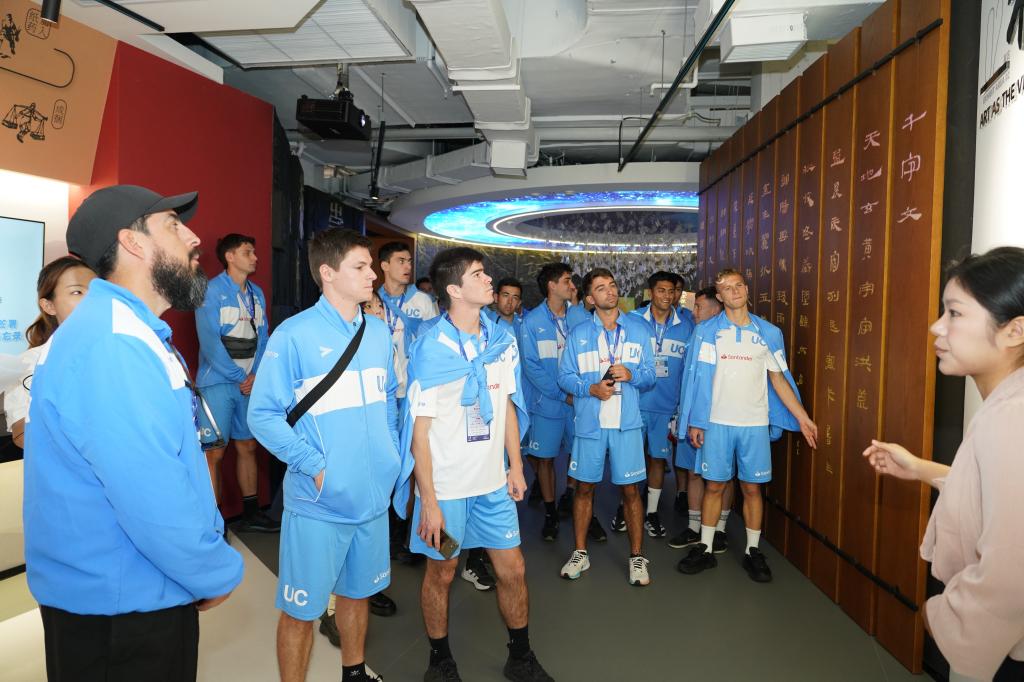 在我校欧洲语言学院西班牙语专业师生的翻译讲解陪同下,代表团先后参观了承志楼、校史馆及国际中文教育大楼,深入了解学校六十余载办学历程与育人成就,并在中华文化展示馆中沉浸式体验了汉字书法与活字印刷的千年韵味,领略了中华优秀传统文化的深邃魅力。学生志愿者向代表团赠送寓意美好的汉字卡片,以文字达意,传递中国青年的温暖情谊。先进的场馆设施与精彩的展陈内容引发了队员们的浓厚兴趣,赢得了他们的高度赞赏。