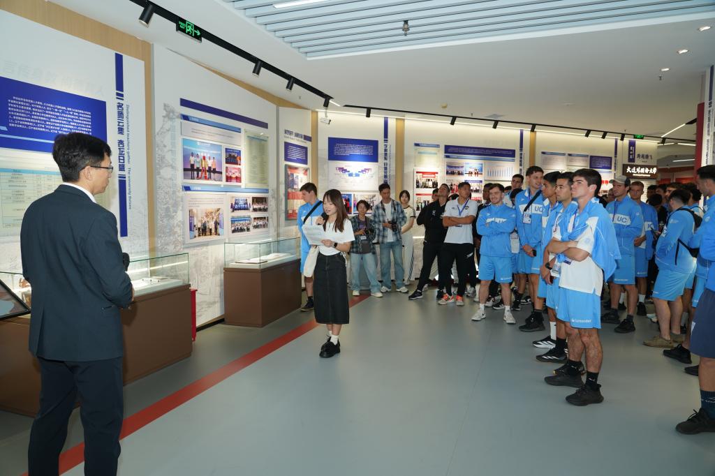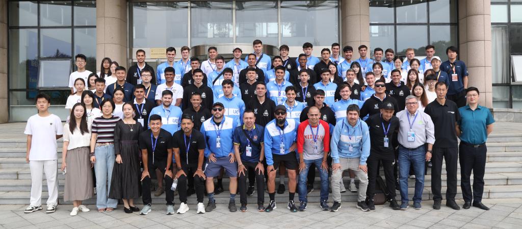 9月19日上午,哥伦比亚及智利两支来连参加“2025年国际大体联足球世界杯”比赛的足球队访问我校,此行是两队行程中的重要一站,旨在以足球为媒、以文化为桥,拓展中拉青年之间的对话空间,深化中外高校互动合作,为未来校际关系的纵深发展奠定坚实基础。