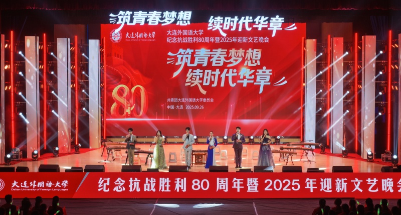 9月26日,大连外国语大学纪念中国人民抗日战争暨世界反法西斯战争胜利80周年、2025年迎新文艺晚会于校文体馆顺利举行。校长丛明才,党委副书记苏健,纪委书记张晓臣,副校长赵勇,党委常委李辉、杨慧以及学校相关职能部门、各学院党政负责人出席,与全体2025级新生共同欣赏演出。