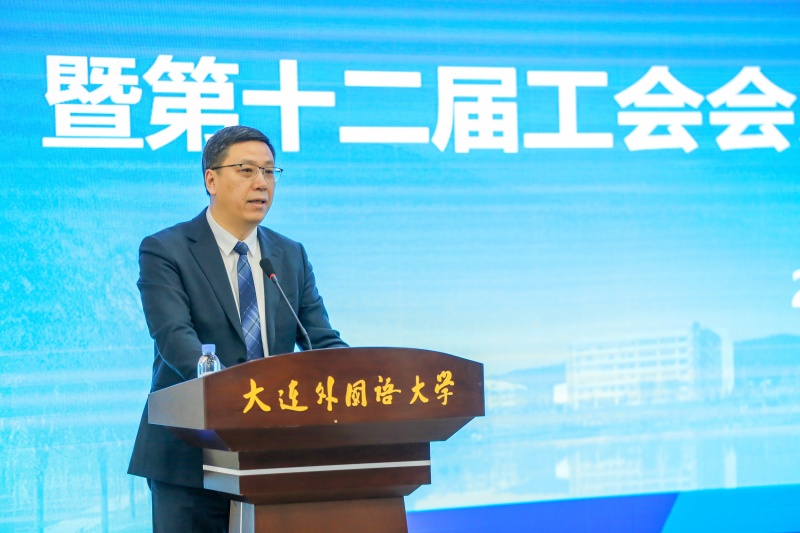 校党委书记钱英伟代表学校党委,向大会的成功召开表示祝贺,向全体与会代表以及付出辛勤劳动的全体工作人员表示问候和感谢。他在讲话中充分肯定了本次会议取得的成果,他表示,过去的一年,全校教职工凝心聚力、攻坚克难,学校综合办学实力跃上新台阶,服务辽宁全面振兴取得新成绩。他指出,2026年是“十五五”开局之年,也是我们向着更高目标迈进的关键之年,面对新形势、新任务,全校上下要继续坚定信心、鼓足干劲,在服务教育强国建设,服务辽宁全面振兴中展现更大担当和作为。围绕落实会议精神,他提出四点要求:一是进一步加强教代会建设,促进学校民主管理。教代会制度是反映民意的重要载体,是学校实现民主办学、民主治校的重要标志,各级教代会和工会组织要不断加强自身建设,完善民主管理机制,发挥工会桥梁作用,提升代表履职能力与提案质量,牢固树立主人翁意识。二是进一步提高思想认识,推动学校高质量发展。要牢固树立勇于争先、追求卓越的意识,主动应对高等教育变革与人工智能挑战,推动外语人才培养向“思想性、跨文化性与创新性”转型,提质增效、争先进位,以思想上的高标准引领行动上的高质量,真正做到眼界更宽、标准更高、定位更准,在服务教育强国战略中找准属于大外的新坐标。三是进一步聚焦内涵建设,高标准完成各项重点工作任务。要锚定高质量发展目标,聚焦优势领域,遵循“有所为才能有所不为”原则,集中力量打造“单项冠军”,高标准落实各项重点工作任务;要高标准编制完成“十五五”规划的谋篇布局,凝聚“全校一盘棋、上下一条心”的共识,全力突破博士点建设瓶颈,力争在国家级人才引育、数字化教育教学改革、国际化办学特色及抓好“师德师风建设年”等各项工作上取得新成效,奋力开创发展新局面。四是进一步加强作风建设,为学校改革发展提供有力保证。当前正值在全党开展树立和践行正确政绩观学习教育,全校上下要切实转变工作作风,始终坚持以师生为中心,倾听师生呼声、解决师生急难愁盼,让数据多跑路、让师生少跑腿,要以有温度、高效率、优品质的服务,营造干事创业、风清气正的育人环境,以实实在在的业绩引领、推动、确保学校实现高质量发展。