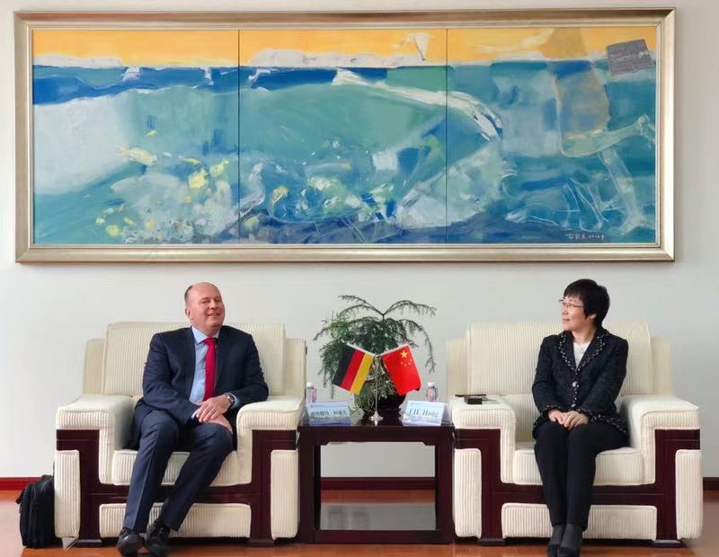 会谈中,刘宏校长对哈特穆特・科锡克主席与本哈特・哈伯尔校长一行的到访表示热烈欢迎,并就我校德语专业人才培养、师资队伍建设与对德交流合作等相关情况向代表团一行进行了详细介绍。刘校长表示,中德合作对中国、特别对辽宁有十分重要的意义,两国在沈阳不仅共建了华晨宝马汽车有限公司与中德高端装备制造产业园,包括默克尔总理在内的德国高层领导也多次到访辽宁。在双方的合作中,我校多次为各类外事活动提供语言翻译服务,为两国在各领域的交流与合作发挥了积极作用。此次代表团的到访,也是我校与德国高校交流合作的重要实践。希望双方汇聚各方力量,共同搭建平台,积极开展包括师生交流、教材编订、就业实践在内的各项工作,通过探索语言文化与医疗护理的支撑与嫁接,为中德健康产业的发展贡献一份力量。
