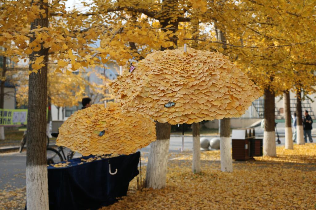 近日,大连外国语大学校园里的“银杏伞”在社交平台上火了。谁懂?本来赶着去上课却在前往教室的路上被“银杏伞”惊艳得移不开眼。星星、笑脸、爱心……路面上随处可见由银杏叶堆成的图案。有人惊喜地发现“银杏伞”下的桌椅上也都粘满了银杏叶,旁边还放着一只毛绒玩偶网友直呼:“这场景也太唯美了!” 而创造这些别致手工作品的正是大连外国语大学校园里的保洁阿姨们。有网友认为:这些暖心的作品背后藏着阿姨们对生活的热爱小编对此表示同意!