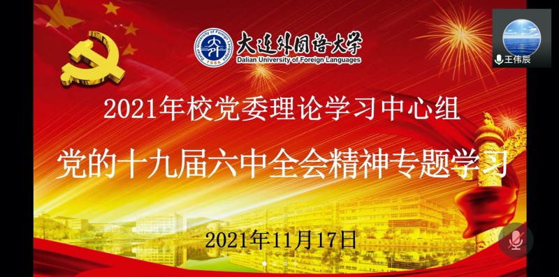 11月17日上午,校党委理论学习中心组在线上召开第十五次专题学习会议,围绕党的十九届六中全会精神开展学习研讨。会议由党委书记王伟辰主持,校党委理论学习中心组成员参加会议。