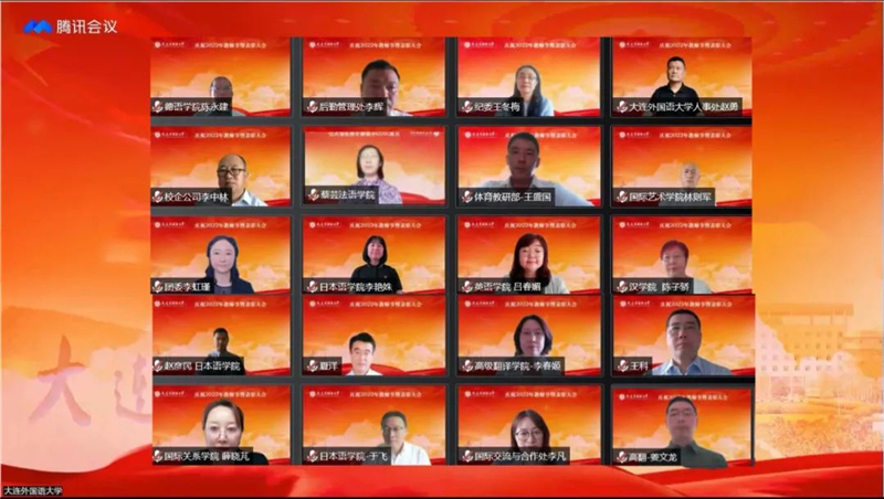会上,大外学子用11种语言为全体教职员工送上云端祝福。副校长姜凤春宣读关于表彰2020-2022年度“两优一先”及疫情防控工作先进集体、优秀教育工作者的决定。副校长丛明才宣读获得国家级、省级、市级、校级奖励名单。副校长常俊跃宣读2021-2022学年度获批省级以上科研项目和教师教学比赛获奖名单。