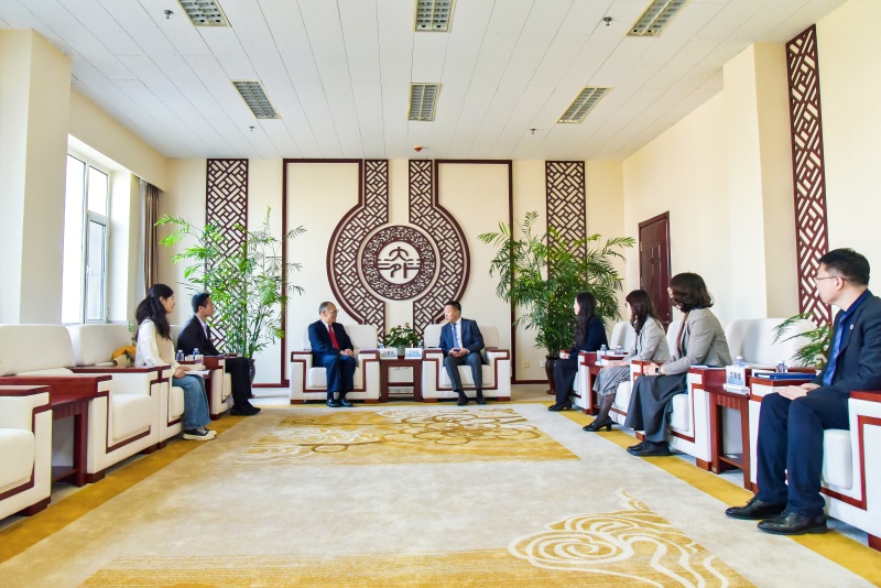 校党委书记王伟辰、副校长刘风光、国际交流与合作处及英语学院相关负责人会见了客人一行。会谈中,王伟辰书记介绍了我校的建校历史、区域国别研究中心建设情况以及近年来在国际组织人才培养领域取得的积极成果。我校作为中国东北地区唯一的公立外国语大学,始终坚守为党育人,为国育才的初心使命,回应时代需求,服务民族复兴,着力培养三有三型高素质的涉外人才。刘碧伟大使对我校的人才培养质量、国际化办学特色及校园建设表示肯定。他表示,我校众多优秀毕业生活跃于祖国外交外事前线,以实际行动践行使命担当,很高兴此次到访我校,做青年学子思想上的引路人。