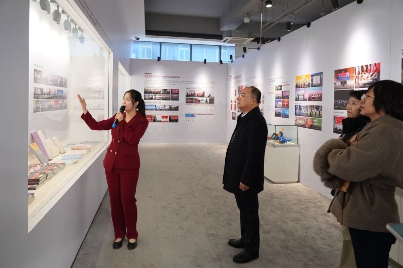 会前,丛明才一行参观了北外“高扬外特精通 建设教育强国”主题展览。