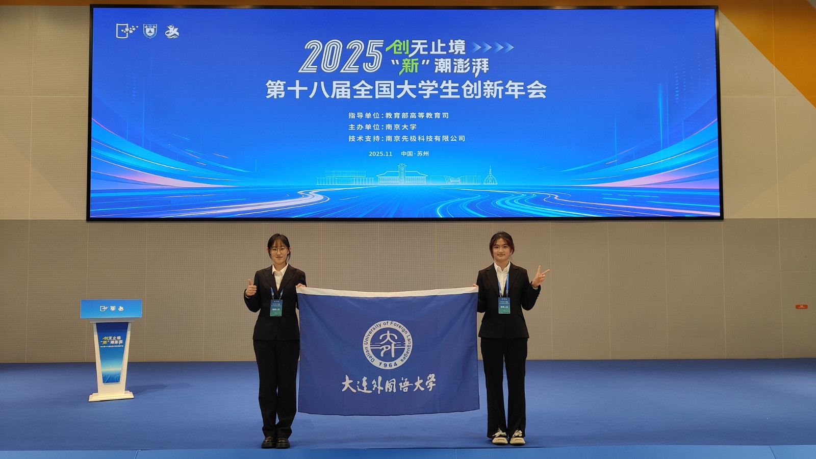 11月21日至23日,第十八届全国大学生创新年会(以下简称“国创年会”)在南京大学苏州校区举办。来自全国28个省、自治区、直辖市的1200余名高校师生代表、国家级大学生创新训练计划专家组成员、省级教育行政部门领导和产业界嘉宾齐聚现场。我校2篇“国创计划”项目发表的学术论文继斩获第十二届辽宁省大学生创新年会特等奖之后,被辽宁省教育厅推荐代表辽宁省地方高校参加本届国创年会(省教育厅共推荐12项)。