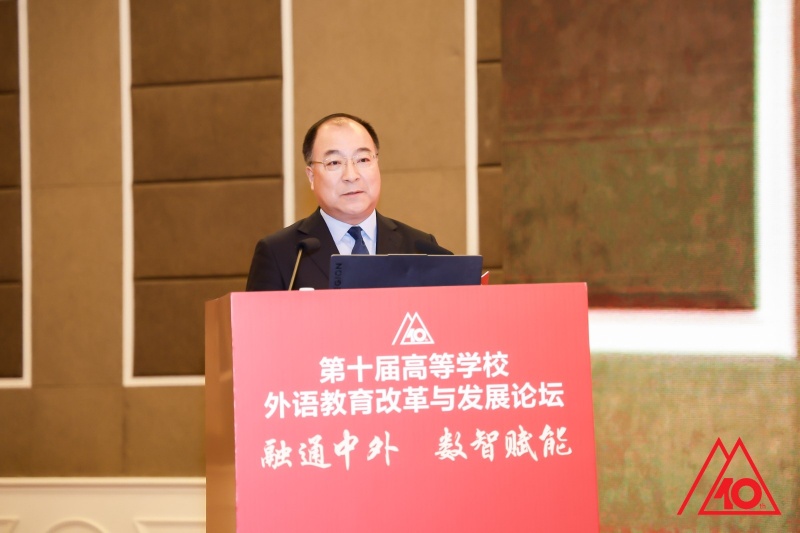 3月21日至22日,第十届高等学校外语教育改革与发展论坛在北京举办。本届论坛以“融通中外,数智赋能”为主题,汇聚了来自中宣部、教育部等相关部门领导,以及外语教育、教育国际化、教育数字化等领域的2000余位专家学者,30余万名高等外语教育同仁通过线上直播云端参会,共商高等外语教育“十五五”时期的创新发展方略。我校校长丛明才教授、副校长刘风光教授及多位专家学者应邀参会,在多个论坛担任主持并作专题报告。