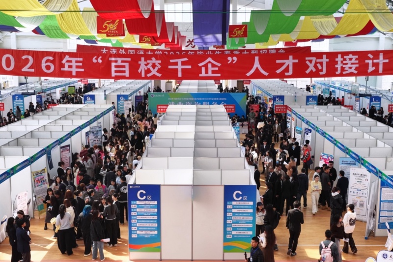 为深入贯彻落实教育部、省教育厅关于开展2026届高校毕业生“春季促就业攻坚行动”部署要求,抢抓春季招聘关键期,促进毕业生高质量充分就业,3月25日,2026年“百校千企”人才对接计划暨大连外国语大学2026年毕业生春季大型招聘会在我校风雨操场举行。我校校长丛明才,党委副书记苏健,纪委书记张晓臣,副校长刘风光、赵勇,党委常委、党政办公室主任杨慧到现场走访用人单位,推介优秀毕业生,相关部门负责人陪同走访。本次活动共有206家单位现场招聘,同时60家单位进行网络招聘,累计提供8664个岗位,吸引了近3000名2026届毕业生和2027届毕业生到场咨询和面试,累计投递简历5996份,线下面试3952人次,初步达成意向1693人次。