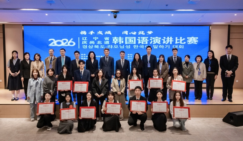 4月14日,“携手友城 同心筑梦”2026辽宁省·庆尚北道韩国语演讲比赛在大连外国语大学举行。本次比赛由辽宁省人民政府外事办公室、韩国庆尚北道共同主办,大连外国语大学、韩国庆北文化财团承办,旨在搭建青年语言交流平台,深化中韩地方人文交流与务实合作。辽宁省人民政府外事办公室副主任高飞、大连外国语大学副校长刘风光、韩国庆尚北道政府外交通商课课长吴泰宪及辽宁省外办、大连市委外办、韩方、我校相关部门负责人出席活动。