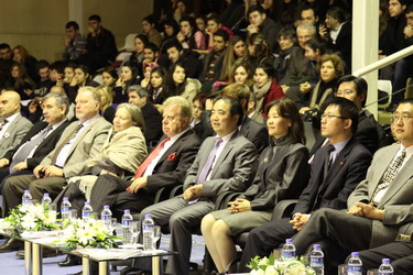 3月13日,我校巡演团在海峡大学孔子学院进行了土耳其站的首场演出。国家汉办副主任胡志平、驻伊斯坦布尔副总领事田开生、海峡大学副校长Arat女士先后致辞。海峡大学孔子学院外方院长Selçuk Esenbel女士以及总领馆工作人员旅土华侨、中资机构、中国教师和留学生代表等近400人观看了演出。整场演出气氛热烈,高潮迭起。一个半小时的时间里,包括中国民族乐器、民族歌舞、汉服展示和现场书法表演等形式多样的节目,其中还有演员和观众的互动,让现场气氛更加热烈,从多方面诠释了中国传统文化。此外,海峡大学孔子学院汉语教师耿佳和土耳其学生Çala演唱了中国歌曲《月亮代表我的心》,更是让在场的观众们感受到了中土情谊浓。 演出结束后,观众们用热烈的掌声和欢呼声表达了对代表团演出的赞美,久久不愿离去。采访中,观众表示:“今天的演出非常精彩,以前我只通过电视看过北京奥运会开幕式的精彩表演,今年9月份我就要去中国,我非常期待。”“我很享受这场演出,非常完美。它使我想要学习中文的愿望越发强烈。以前我只是通过电影、动画了解中国,此时此刻我想起身到中国去看一看。”;“我非常喜欢你们的舞蹈和音乐,我想向中国问好!” 3月14日,作为海峡大学“孔子学院大春晚”的一部分,我校巡演团来到奥坎大学进行演出。演出前,胡志平副主任会见了奥坎大学的校长Şule Kut女士。中国驻土耳其伊斯坦布尔总领事张清洋及夫人、奥坎大学董事Okan和Şule Kut校长及中国驻伊斯坦布尔领馆工作人员出席了晚会。整台晚会充满欢声笑语,台上台下激情飞扬,高潮起伏,掌声雷动,观众情绪激昂,其乐融融。值得一提的是,在互动体验中国民族传统乐器环节,张清洋总领事走上舞台用笛子演奏了一曲《彩云之月》,赢得了全场喝彩声。晚会结束后,张清洋总领事、奥坎大学董事Okan和Şule Kut校长走上舞台,对巡演团的完美演出表示祝贺和感谢,并与全体演员合影留念。张清洋总领事说:“各位老师、同学们,大家辛苦了!作为文化的使者,你们不辞辛苦来到这里,带来了精彩纷呈的表演,你们让在座的所有观众领略到了中国文化的博大精深,展示了中华文化绚烂多姿的一面。我在这里代表各位观众对你们这场堪称完美的演出表示衷心的感谢,希望你们在这里度过一段美好的时光,祝你们明天在安卡拉的演出也获得圆满成功!”奥坎大学校长Şule Kut女士讲到:“你们来自遥远的中国,你们的表演对于我们每一位观众来说,就是无与伦比。最重要的是我们感受到了你们诚挚的心意,希望你们有机会再来我校演出,我相信我们也一定会去中国。”一位教师表示:“你们的表现太棒了,衷心地感谢你们。” 3月15日,我校巡演团冒雪乘车7个半小时赶赴安卡拉中东技术大学孔子学院。演出前的毛笔书法展示吸引了大量观众前来学习、试笔,大家纷纷拿起自己的作品拍摄留念。穿插其中的与观众互动节目“转手绢”和学习笛子葫芦丝等乐器吹奏更是吸引了许多观众上台体验,短短几分钟,很多人能把难以驾驭的中国手绢不可思议地、神奇地转动起来,再次引发了台下一阵阵的喝彩声和欢呼声!此时,巡演团的演员们借此热烈气氛把象征中国春节吉祥如意的中国结和龙年吉祥物香包等中国礼物送给了热情参与的观众,以表达中国人民对土耳其人民新年祝福之情。采访中,中东技术大学孔子学院中方院长王善平说:“在国家汉办的支持下,我们孔子学院不仅会踏踏实实地推广汉语,更重要的是我们将一如既往地弘扬中国文化,支持中国的文化团体来安卡拉演出,增进中国与土耳其之间的文化交流。”中东技术大学领导表示:“我们度过了一个美好的夜晚,我们非常荣幸地邀请到贵校演出团,你们的演出非常棒,无论是大人还是小孩都乐在其中。同时,我们也从中接触到许多中国文化,比如传统乐器、民族舞蹈、中国书法等,再次感谢你们的辛苦付出,欢迎来到安卡拉,希望你们还能再来演出。”观众表示:“今天的表演很精彩,吸引了大批观众前来观看演出。我觉得此次演出非常有意义。” 3月16日,雪霁初晴,春寒料峭,巡演团的最后一站设在了中东技术大学孔子学院佳蕾孔子课堂。演出前,根据观众年龄偏小的特点,巡演团选择轻松活泼的节目与现场互动相结合的方式。演员身着中国汉族服饰挥毫展示中国书法魅力的同时,也将独具中国民族特色的小礼品分发给现场观众。中国驻土耳其大使馆文化参赞余建、当地学校主要领导以及500余名学生观看了整场演出。作为此次巡演的最后一场演出,全体演职人员发挥得淋漓尽致,现场掌声不断。演员们美轮美奂的舞姿和着装,都让孩子们痴迷和兴奋,随着《山歌好比春江水》中轻快跳跃的旋律,许多学生情不自禁地伴着旋律舞动双臂,现场气氛热烈。佳蕾孔子课堂的师生也倾力加入到演出当中,其精彩的印度舞表演博得观众热烈的掌声,再次将晚会气氛推向高潮。演出结束后,学生们争相跑上舞台与演员合影留念。余建参赞还亲切的走到演员中间,告诉大家要继续传播中华文化,珍视祖国的和平与稳定,鼓励大家为祖国美好的未来努力奋斗。采访中,现场观众对我校艺术团的演出赞不绝口:“我们非常喜欢你们的演出,感谢你们的到来。” 随着土耳其站演出的结束,我校巡演团顺利完成了本次赴阿联酋、土耳其“孔子学院大春晚”的9场包含艺术演