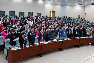 本次培训旨在提高汉语教师志愿者对汉语国际推广工作战略意义的认识,增强光荣感、责任感和使命感,使之具备较好的汉语作为第二语言教学的教学技能、课堂管理技能、中华文化传播技能和跨文化交际能力,迅速适应赴任国生活,胜任志愿服务工作,成为合格的中外友好交流民间使者。我校承办的2012年第二期孔子学院/课堂志愿者储备培训班共计167人,由来自全国17所高校的应届本科毕业生、在读硕士研究生组成。他们将在我校通过为期两个多月的培训,经考核合格后赴欧、亚、非三大洲28个国家担任汉语教师志愿者工作。本次培训注重理论与实践相结合,教师讲授与学生试讲、案例分析、课堂讨论相结合。包括:志愿精神与汉语教师志愿者、教学与管理、教材与网络资源的利用、教学观摩与实践、当代中国国情与中华文化、中华才艺、能力拓展、涉外教育、跨文化交际与赴任指导、赴任国语言等课程,使志愿者经过集中培训掌握良好的对外志愿服务能力,完成传播中华文化、促进中外友好的光荣使命。 会上,孙玉华院长代表大连外国语学院向各位老师和学员的到来表示热烈的欢迎和亲切的问候,对国家汉办长期以来对大连基地的支持和信任表示由衷的感谢。她说,此次,国家汉办将孔子学院志愿者培训工作交给大连基地,是对大外的充分信任,也赋予了大外莫大的荣誉和使命。近年来,作为国家汉办在全国设立的19家汉语国际推广基地之一,我校先后承担了孔子学院中方院长培训、各类汉语教师志愿者培训以及海外汉语教师教材培训等,具有丰富的对外汉语培训经验。在座的各位学员是中华文化的播种机,是中外友谊的民间使者,更是推进汉语国际推广这项功在当代、利在千秋的“非常之事”的“非常之人”,使命神圣,催人奋进。我真诚地希望各位学员将本次培训当成一次“造血”,而非“输血”,希望本次培训能够全面激发大家的学习潜能,提供一把赴任海外后独立解决各种问题的“钥匙”,更希望同学们能进一步增强荣誉感、责任感和使命感,全面提高汉语教学技能、中华文化传播能力及跨文化交际能力,能够迅速适应国外生活,胜任志愿服务工作。大连外国语学院将以高度负责的精神、争创一流的标准、严谨求实的作风和一丝不苟的态度,强化责任、细化措施,精益求精,举全校之力将本次培训办出特色、办出水平。 培训班学员梁晶晶代表全体学员向国家汉办、大连外国语学院的各位领导、专家和老师们表示衷心的感谢,做出以下四点郑重承诺:一是坚定为国际汉语教育事业服务的理想信念,勇于承担志愿者的使命和责任;二是掌握汉语教学、文化传播、跨文化交际等实用技能;三是全身心投入培训,虚心学习,遵守培训纪律;四是提高自身综合素质,完善专业知识。她表示,经过此次培训,我们每一位怀抱汉语梦的志愿者都将如愿以偿,成长为具有世界公民意识、具有国际化视野的青年,在汉语国际教育的第一线发挥自己的力量。我们定会牢记肩负的“光荣感、使命感、责任感”,满怀“激情、热情、感情”,不负志愿者的光荣,为汉语和中华文化推广事业的美好明天努力奋斗。 教师代表潘先军代表我校的全体教师向远道而来的各位同学表示热烈欢迎,他说,为了本次培训,我们的老师、工作人员和服务人员都已经做好准备,将用丰富多彩的授课形式、深入浅出的知识讲解、饱满的工作热情、周到细致的服务迎接你们到来。大外是一所以外语为主,以国际化办学为特色,多学科相互支撑、协调发展的多科性外国语大学,积淀了优良的学术传统和深厚的人文精神。他希望学员们在本次培训中能够收获丰富的知识,打下坚实的基础,做好知识和心理上的各项准备,成为一名合格的青年志愿者。要发扬志愿者的奉献精神,用自己的知识储备和个人魅力,传播汉语和中国文化,发展友谊促进交流,为中国的和平崛起和实现国家语言文化走出去战略做出自己的一份贡献。 柳振万书记走上讲台,向培训班代表郑重授旗,引发全场热烈掌声。之后,培训班全体学员举行了庄严的宣誓仪式。 会后合影间隙,一位来自云南的学员向记者表达了自己的切身感受。她说:“在这春暖花开、生机勃发的美好时节来到大连,深深体会到大外的美和独特魅力——师生员工的亲人般的热情、大外美誉的名实相符和上上下下蓬勃向上的活力,明白了国家汉办把志愿者培训工作交给大外的原因。这既是国家汉办的信任,也是我们全体学员的信任,相信我们在这样一所国内外闻名的外国语大学学习,是一段终生难忘的时光,将会推动我们用青春和汗水去寻求通往未来的成功之路。”