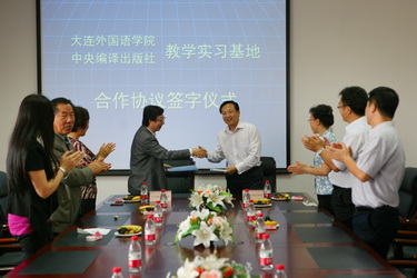 9月25日下午,在机关楼522会议室,我校与中央编译出版社签署了教学实习基地合作协议。中央编译局出版社原社长、总编尹承东,社常务副社长、总编刘明清,文献部西文处处长杜雪峰,翻译服务部总经理王丽昕;副院长杨俊峰、教务处处长宫伟、副处长王科,西葡语系党总支书记樊晓霞、西葡语系教授刘永信出席此次签字仪式。