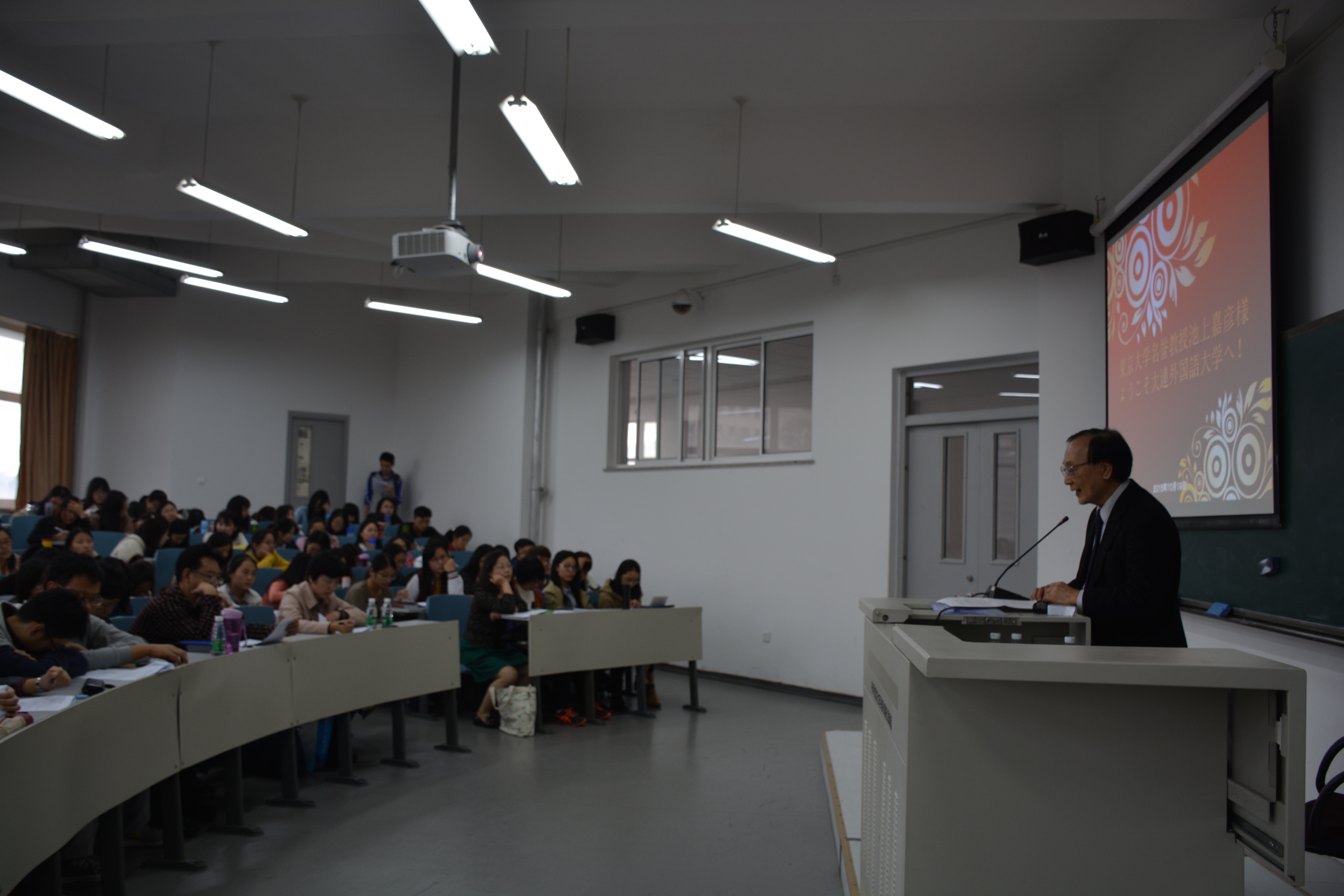 10月19日午後、日本語学院の招請に応えて、池上嘉彦東京大学名誉教授が明徳館の305室で“日本語と俳句”というテーマで学術講演を行った。日本語学院の教師、院生、大学生を合わせて100人あまりが講演に参加した。講演の進行役は孟海霞日本語学院副院長が務めた。