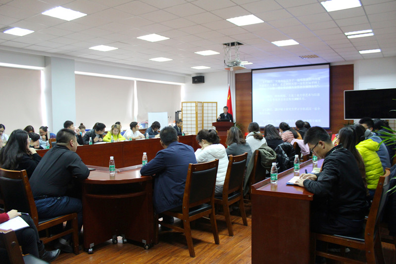 学部チューター(学生の指導教員)の素養・スキルをさらに高めるため、11月9日午後、学生処主催の2018~2019年度第二回チューター素養促進講習会が開かれた。中国共産党大連市委員会大学労働組合研究員王柱森氏が本学の招きにより、学部チューター全体に「大学生の安全教育に向けて」という講義を行った。